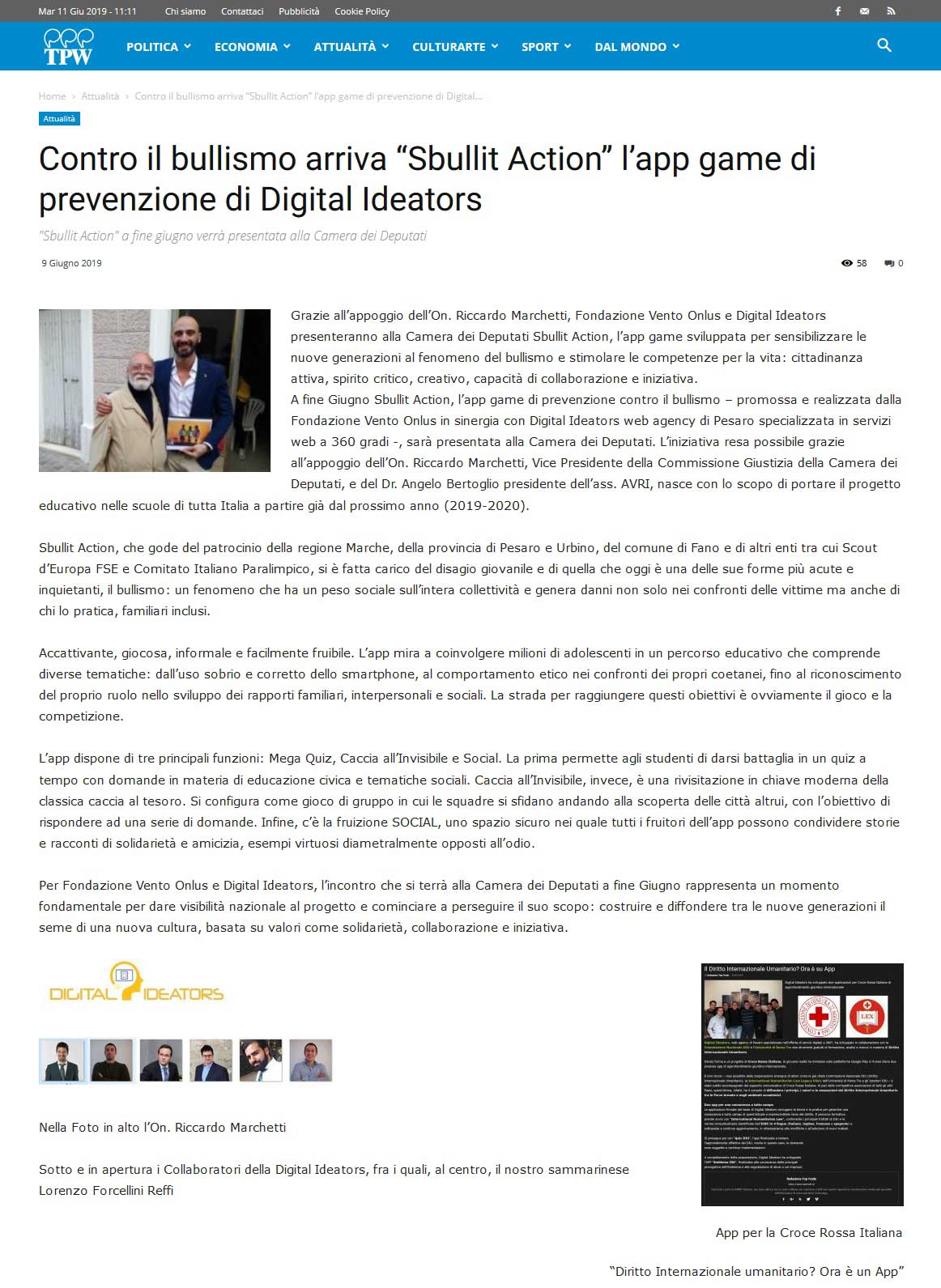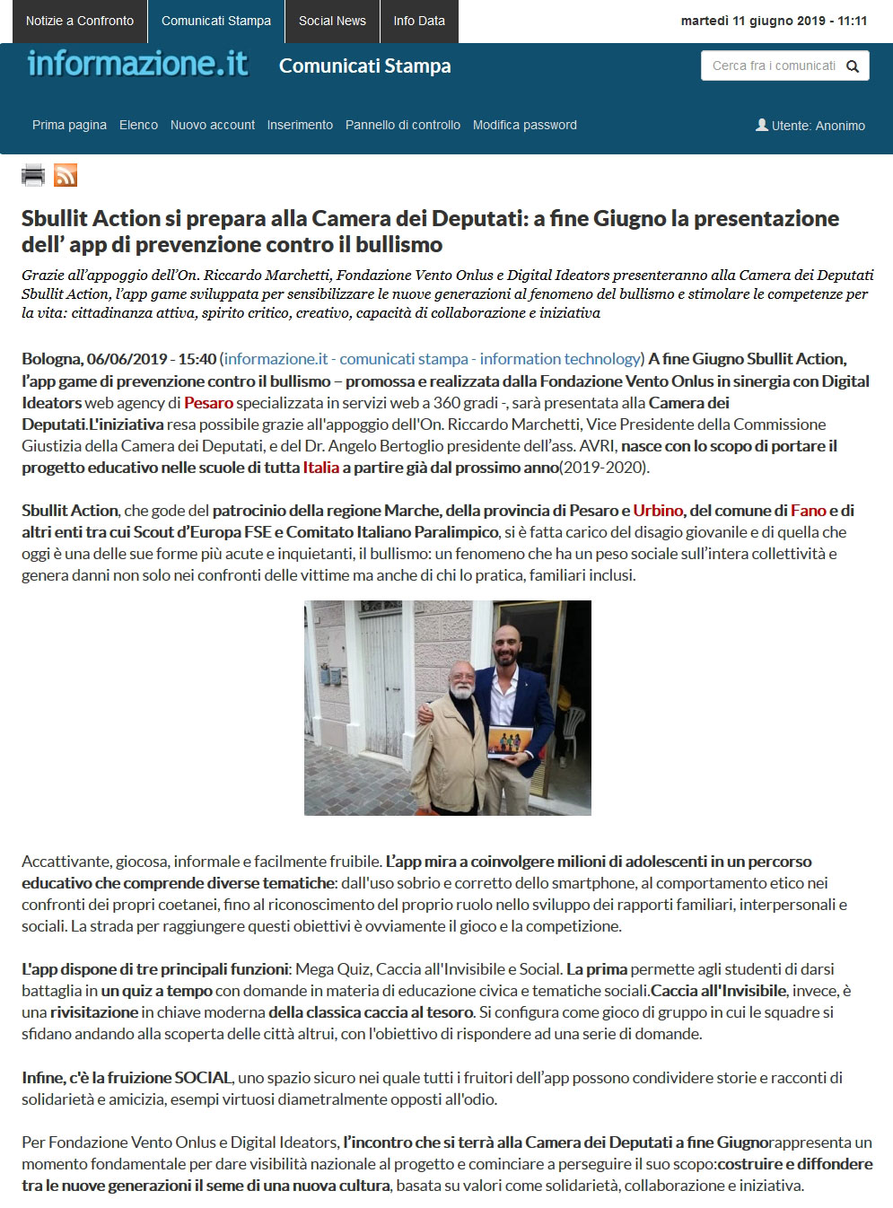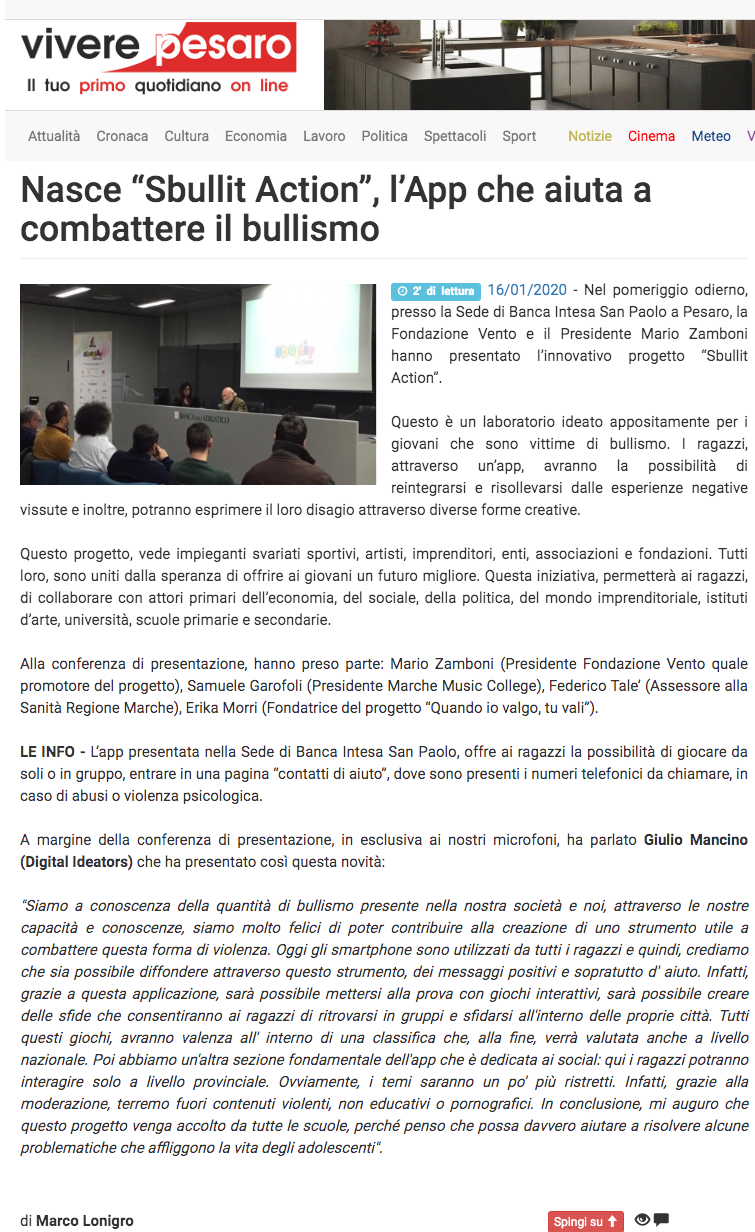 - Sbullit: abbiamo realizzato un'applicazione per abbattere le barriere del bullismo attraverso la creazione di un ambiente inclusivo in cui il piacere di far squadra e di collaborare siano il punto di partenza per una condivisione a 360° dei migliori anni di vita della giovinezza;