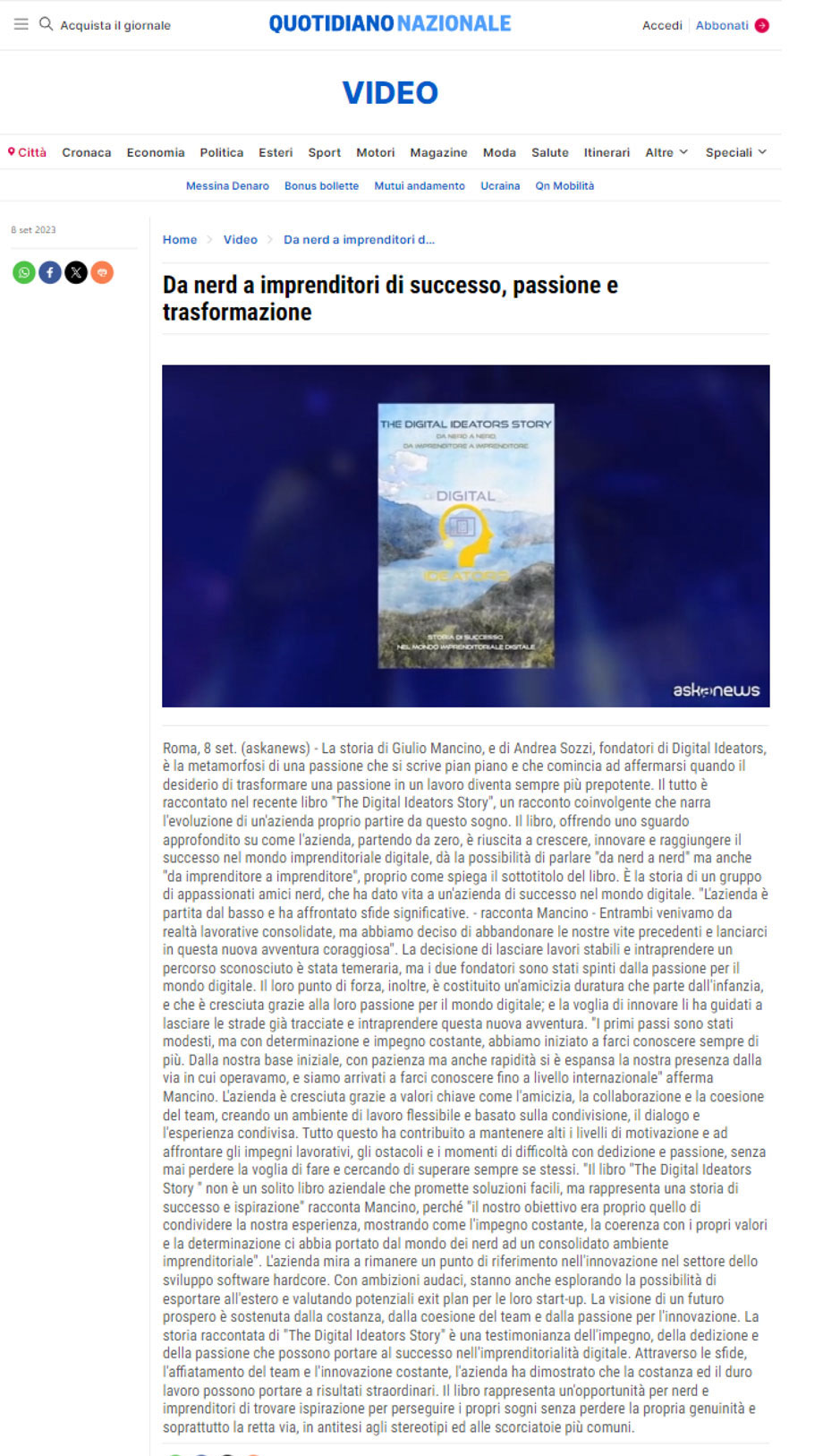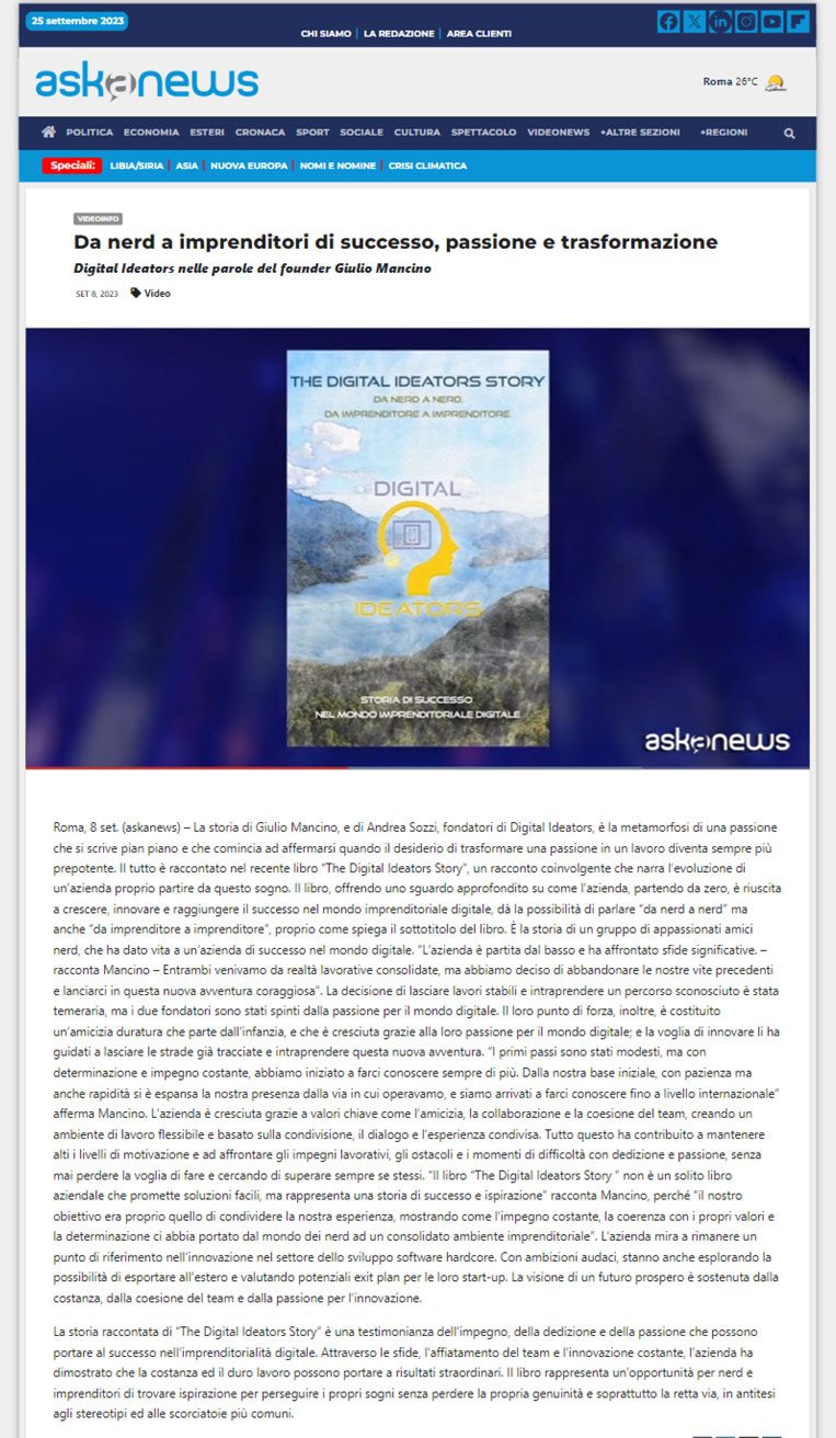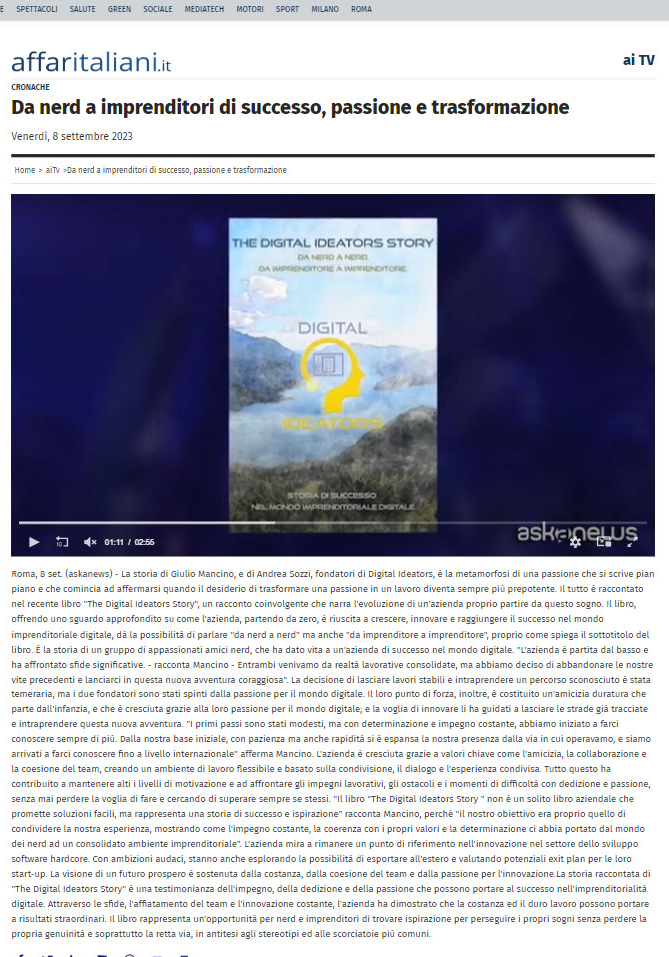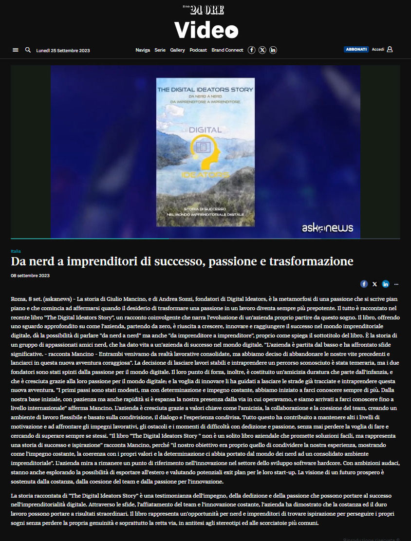 Digital Ideators si racconta in un libro tutto da scoprire con il quale potrete rivivere la storia dalle origini ad oggi ripercorrendo le tappe che hanno reso possibile una perfetta sinergia tra digitale e rapporti umani. Sfide, persone, racconti e aneddoti vi accompagneranno in questo racconto da ripercorrere con i protagonisti che hanno realizzato questo piccolo, grande sogno.
